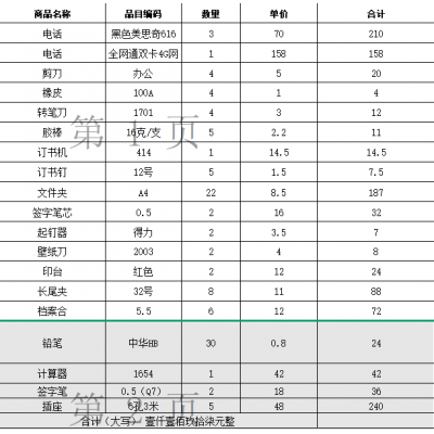 办公用品一批(详见清单) 自营