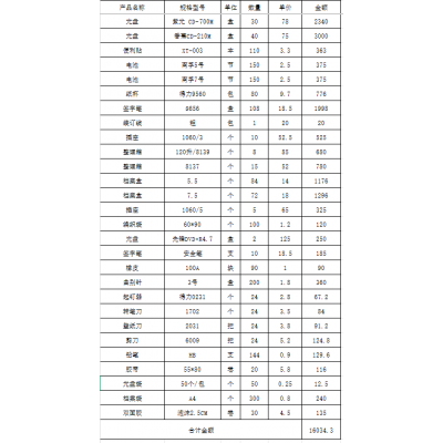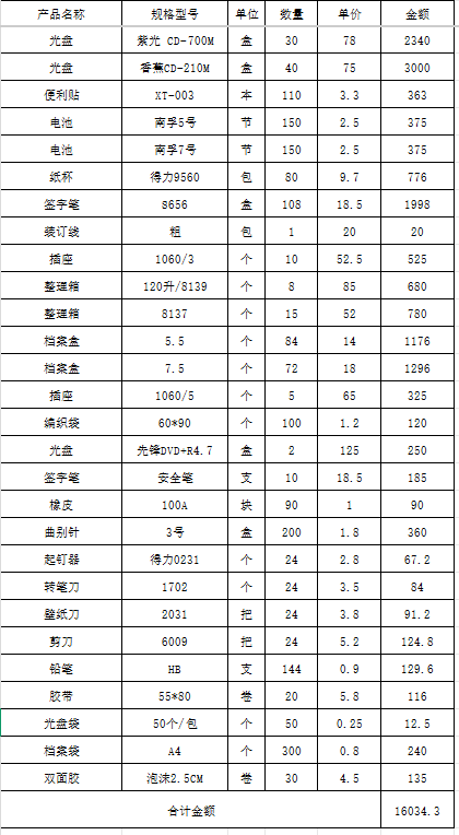 办公用品一批(详见清单) 自营