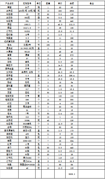 办公用品一批(详见清单)