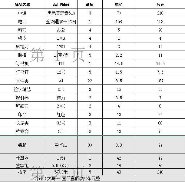 办公用品一批(详见清单) 自营