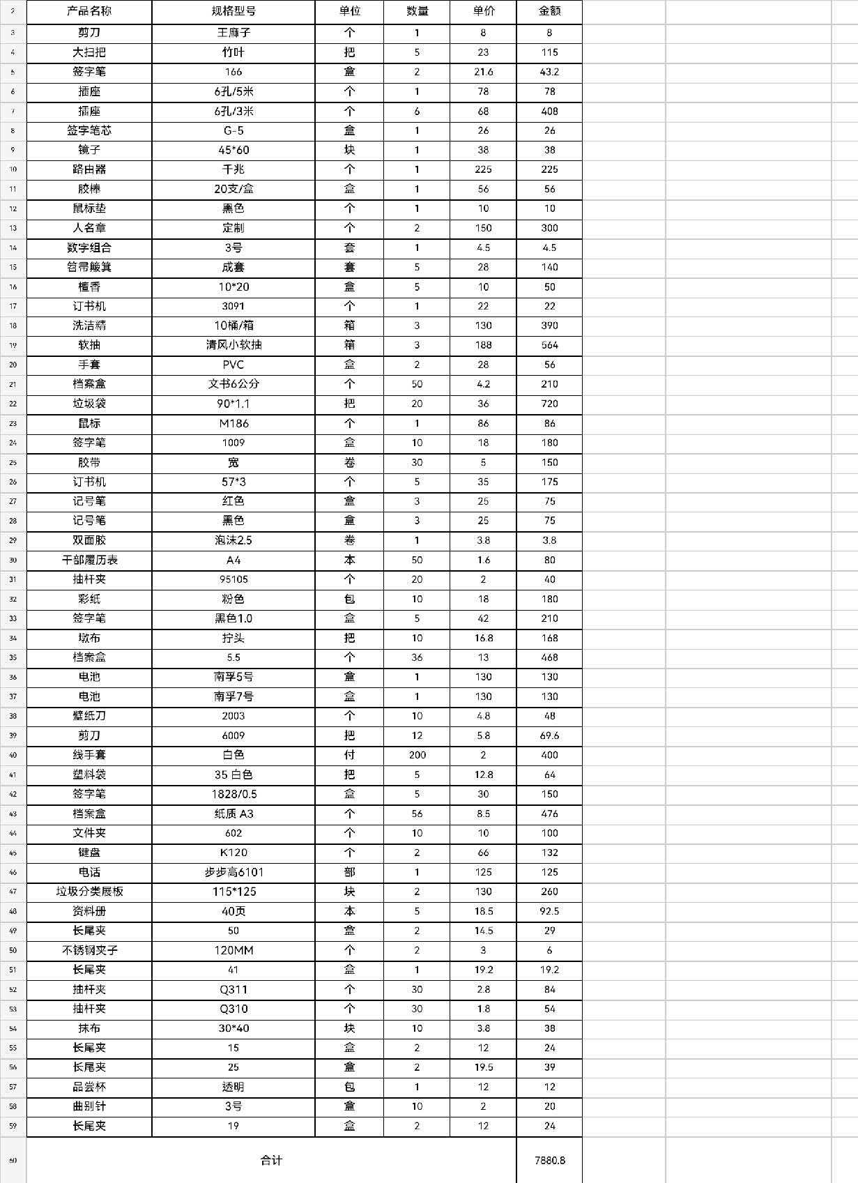 办公用品一批(详见清单) 自营